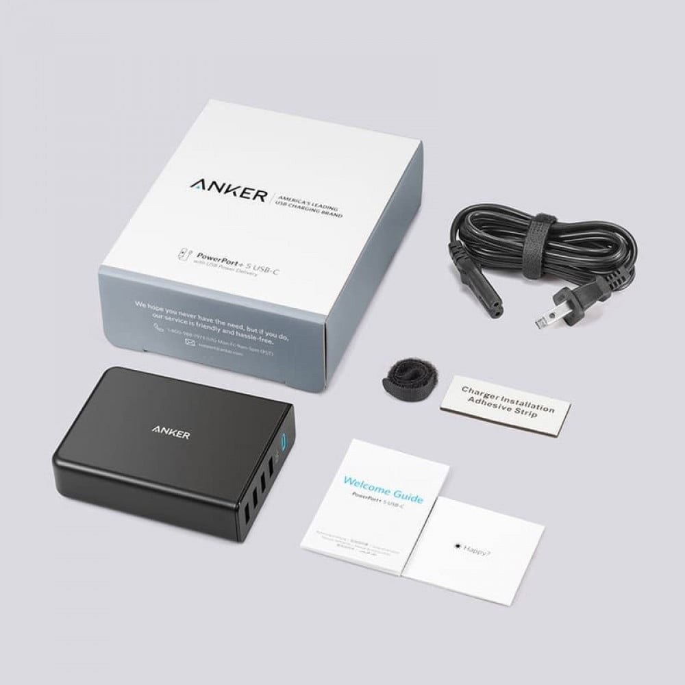 - مزود خمسة منافذ: منفذ USB-C مع Power Delivery و 4 منافذ USB قياسية مع PowerIQ تسمح بالشحن المتزامن متعدد الأجهزة بسرعة عالية.